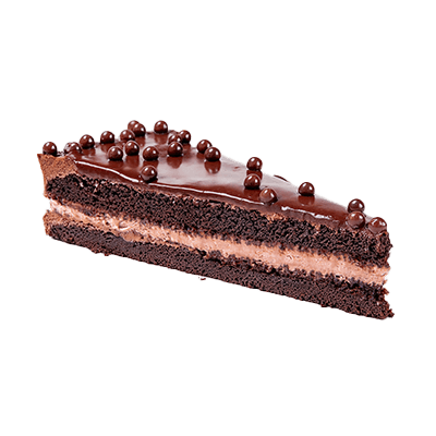 Prăjitură cu cremă de alune și cacao, glazură de ciocolată și frișcă.