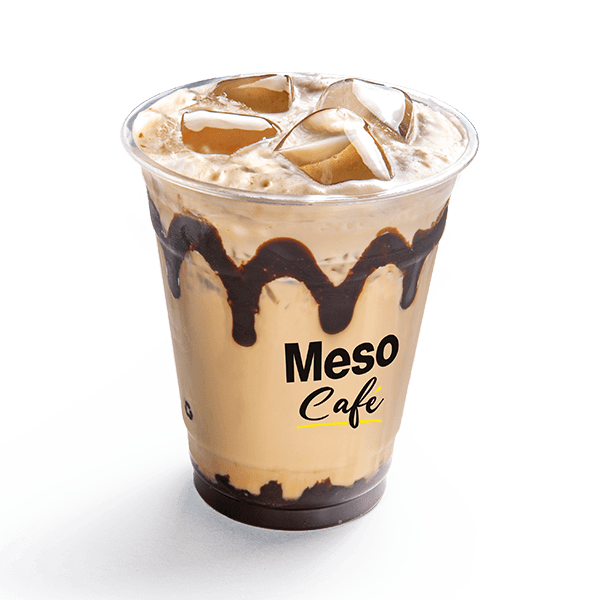 espresso, lapte, sirop zahăr, sos cu gust de ciocolată, gheață