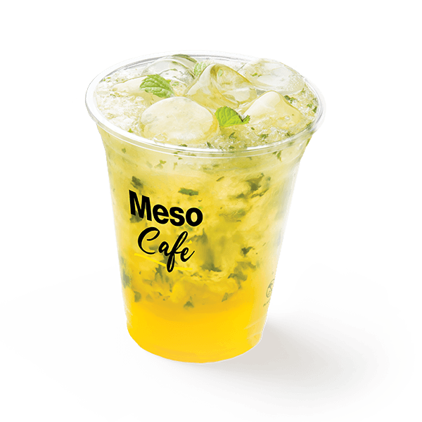 apă, lamâie, piure fructul pasiunii, gheață, mentă