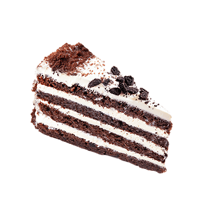 Prăjitură cu cremă de alune și cacao, glazură de ciocolată și frișcă.
